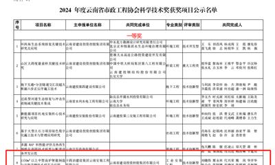 喜报丨公司荣获2024年云南省市政工程协会科学技术奖